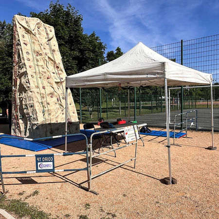 La tour d'escalade était clairement visible dès l'arrivée sur le site des olympiades, ce qui a attiré de nombreux jeunes vers notre stand.